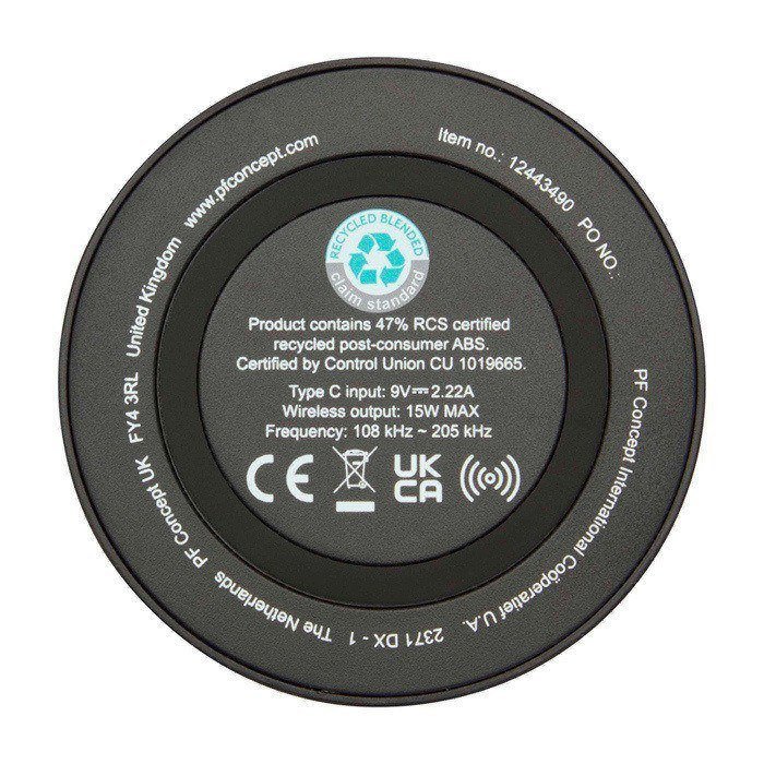 - Base de carga inalámbrica de 15W con plástico reciclado