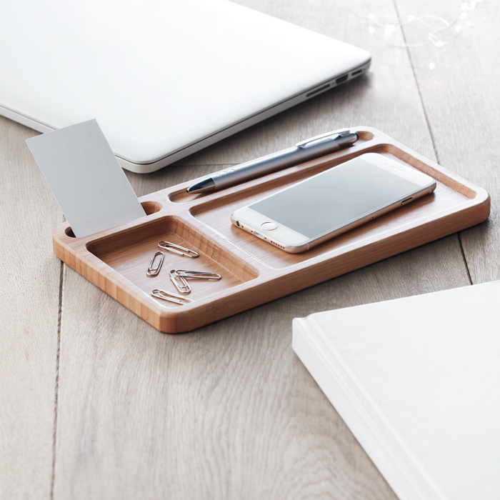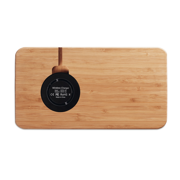- Cajita de sobremesa de bambú con cargador inalámbrico