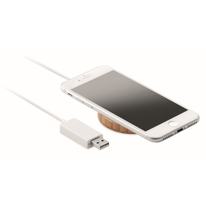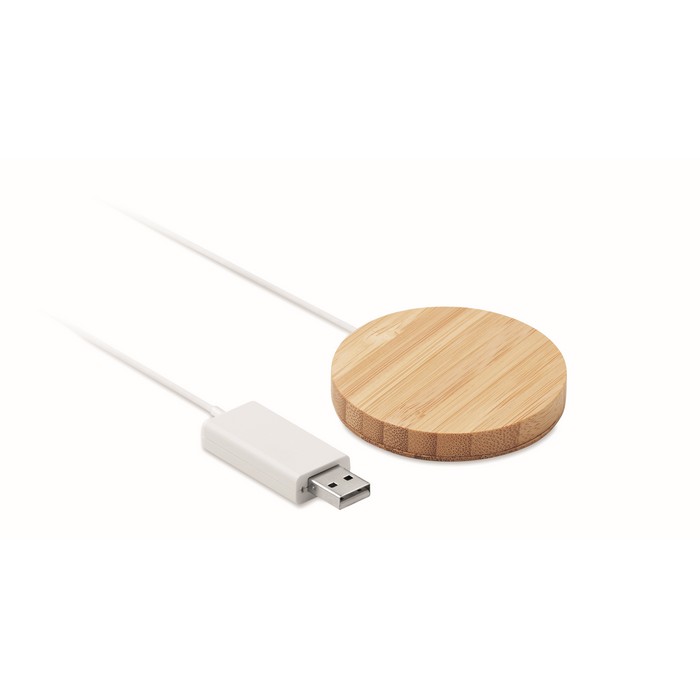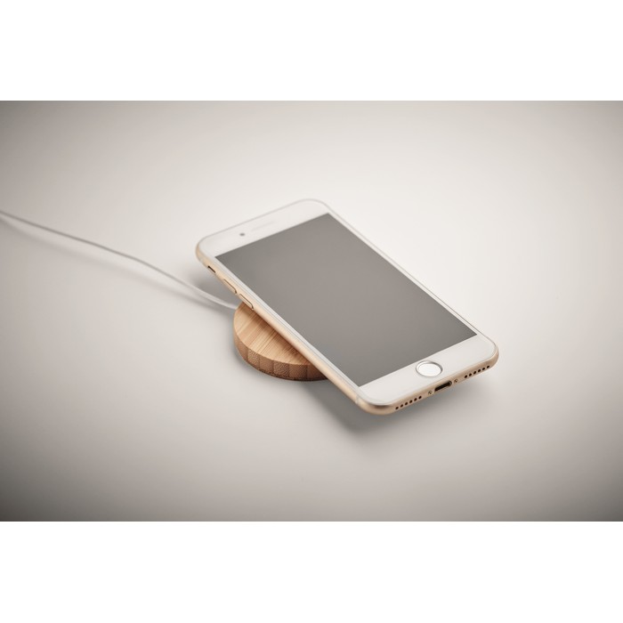 Cargador inalámbrico circular de bambú con pequeño led azul Natura