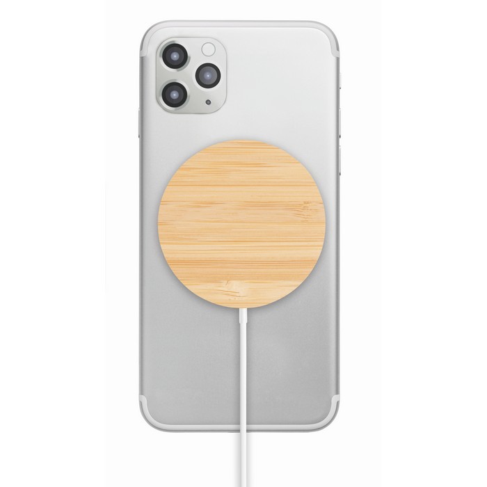 Carga rápida y segura con nuestro cargador inalámbrico de bambú magnético