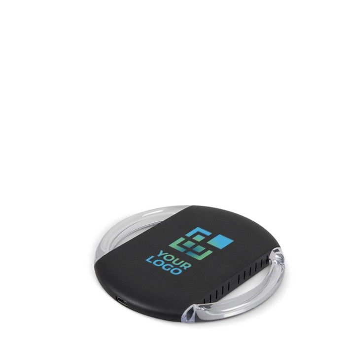 Cargador inalámbrico de 5W fabricado con un diseño moderno y atractivo. Permite cargar tu teléfono sin necesidad de cables, simplemente conectándolo al dispositivo. Las partes transparentes del cargador se iluminan durante el proceso de carga, proporcionando un efecto visual interesante y útil para indicar el estado de carga. Ideal para oficinas y espacios de trabajo, este cargador no solo es funcional, sino que también añade un toque de estilo a cualquier escritorio. Puede ser utilizado como un regalo corporativo innovador o como parte de una estrategia de marketing para destacar la imagen de la empresa.