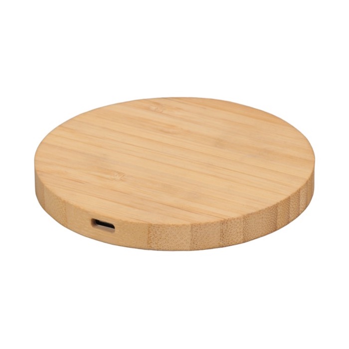 Cargador inalámbrico circular de bambú con pequeño led azul Natura