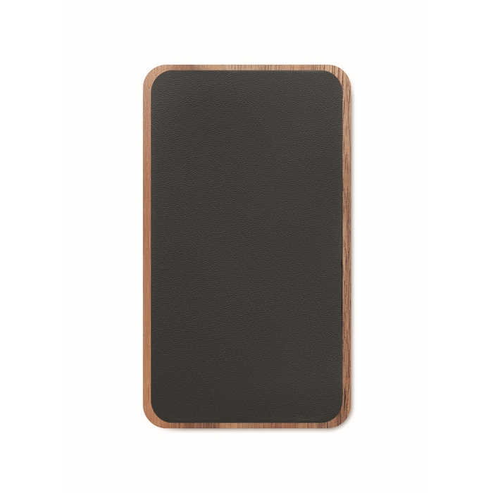 Cargador inalámbrico de 15W y power bank de 4000mAh con carcasa de madera de acacia y PU reciclado. Este dispositivo combina la elegancia de la madera natural con la sostenibilidad del poliuretano reciclado, siendo un 58% reciclado (40% poliéster reciclado y 18% PU reciclado). Soporta tecnología de carga rápida de 20W, lo que permite una carga eficiente y veloz. La entrada y salida Tipo-C aseguran compatibilidad con una amplia gama de dispositivos modernos. Ideal para empresas que buscan soluciones de carga prácticas y sostenibles, este gadget es perfecto para eventos corporativos o como parte de un kit de bienvenida para empleados.