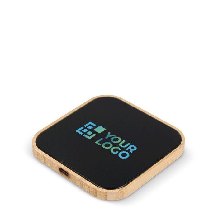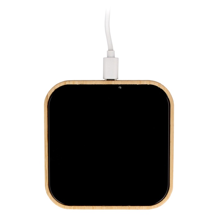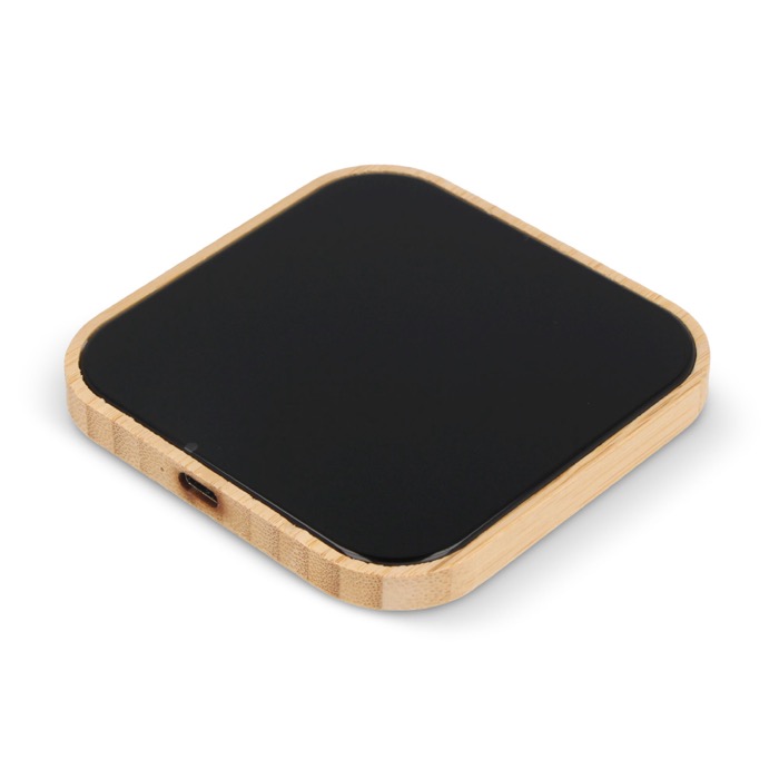Cargador inalámbrico cuadrado de bambú y cristal negro 10W