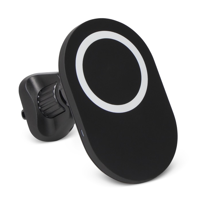 Cargador de coche inalámbrico magnético fabricado con materiales reciclados (R-ABS), diseñado para ofrecer una carga eficiente y segura. Compatible con el ecosistema MagSafe de Apple, este dispositivo también incluye una almohadilla magnética para otros teléfonos, asegurando versatilidad en su uso. Con una capacidad de 15 W, proporciona una carga rápida y confiable, ideal para mantener tus dispositivos activos durante los desplazamientos. Equipado con protección inteligente contra sobrecorriente, cortocircuito y detección de objetos extraños (FOD), garantiza seguridad en cada carga. Perfecto para empresas que buscan soluciones prácticas para sus empleados en constante movimiento, o como un regalo corporativo útil para clientes frecuentes.