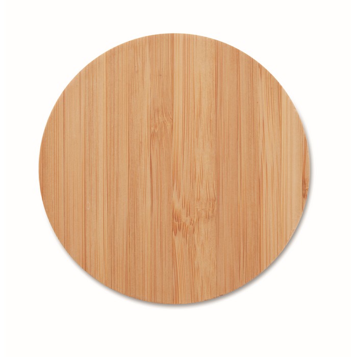 Cargador inalámbrico circular de bambú con pequeño led azul Natura