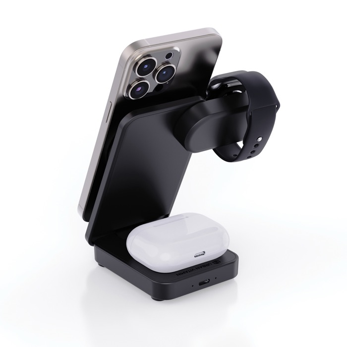 - Carga simultánea para teléfonos, auriculares y iWatch