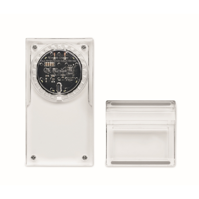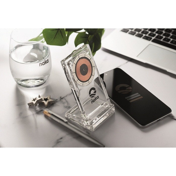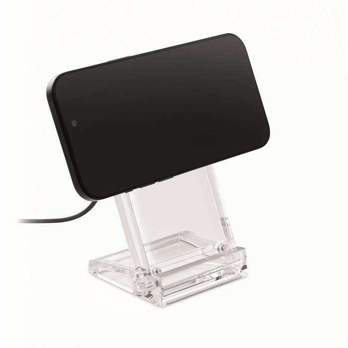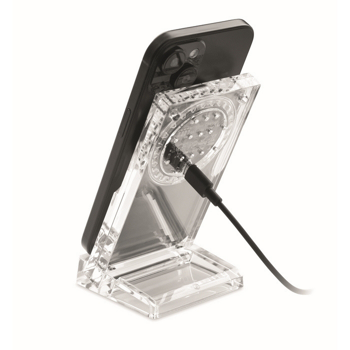 - Cargador inalámbrico en acrílico con soporte para teléfono