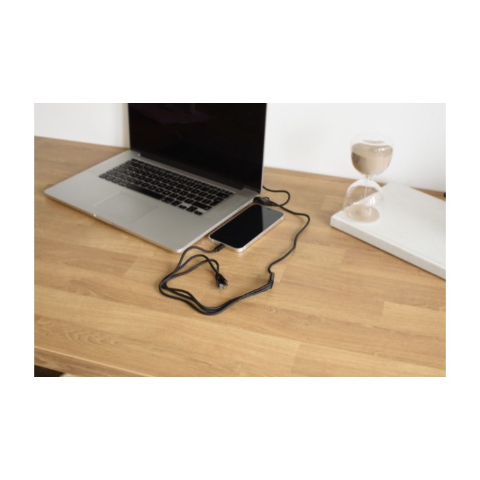 Cable de carga retráctil multiUSB con detalle de bambú y cable de 90cm