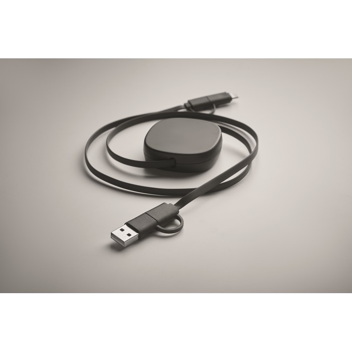 - Cable de carga retráctil de 60 W con carcasa de ABS reciclado