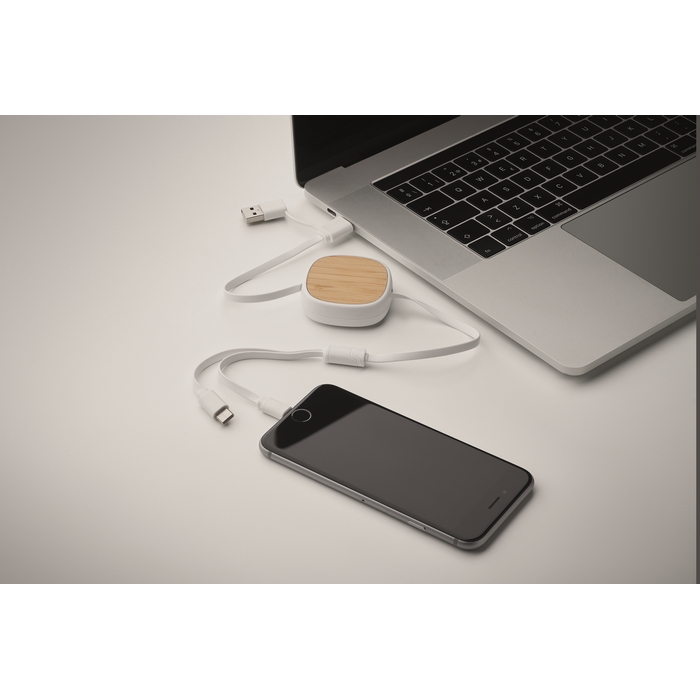 Cable de carga retráctil multiUSB con detalle de bambú y cable de 90cm