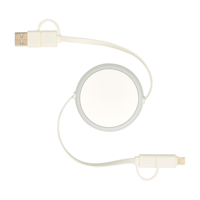 Cable de carga retráctil multiUSB con detalle de bambú y cable de 90cm