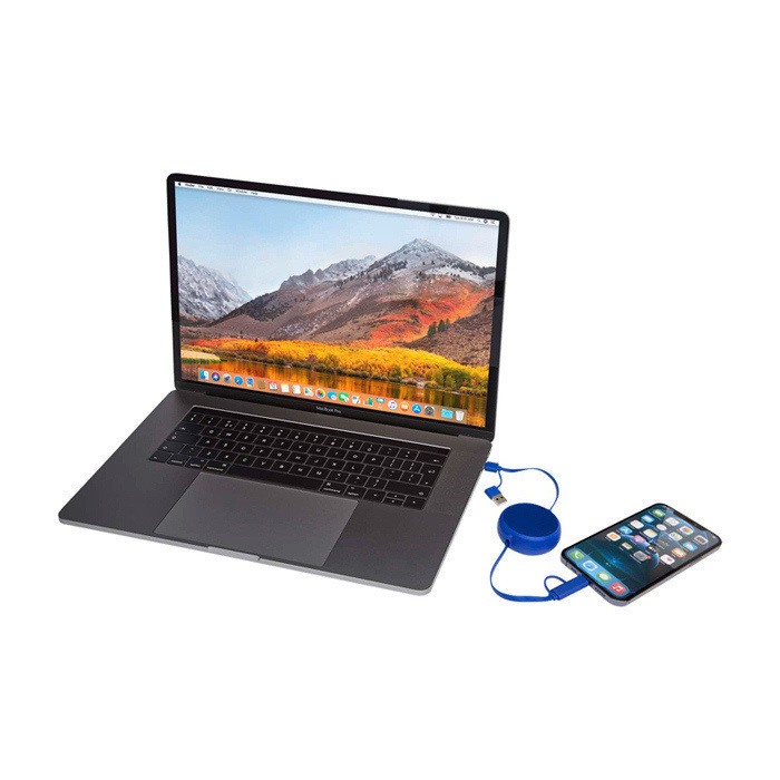 - Cable retráctil con carga rápida de 45 W y sincronización de datos