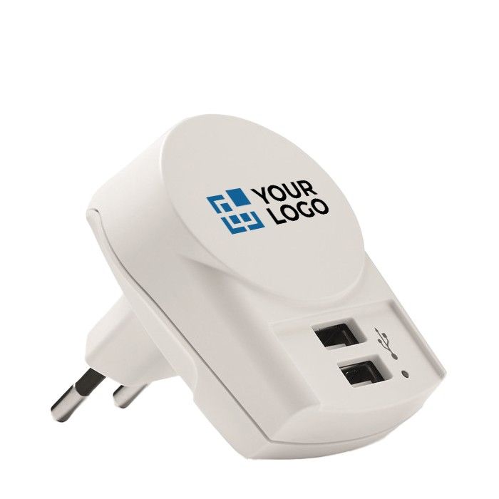 - Cargador europeo de 2 polos con 2 puertos USB Tipo-A
