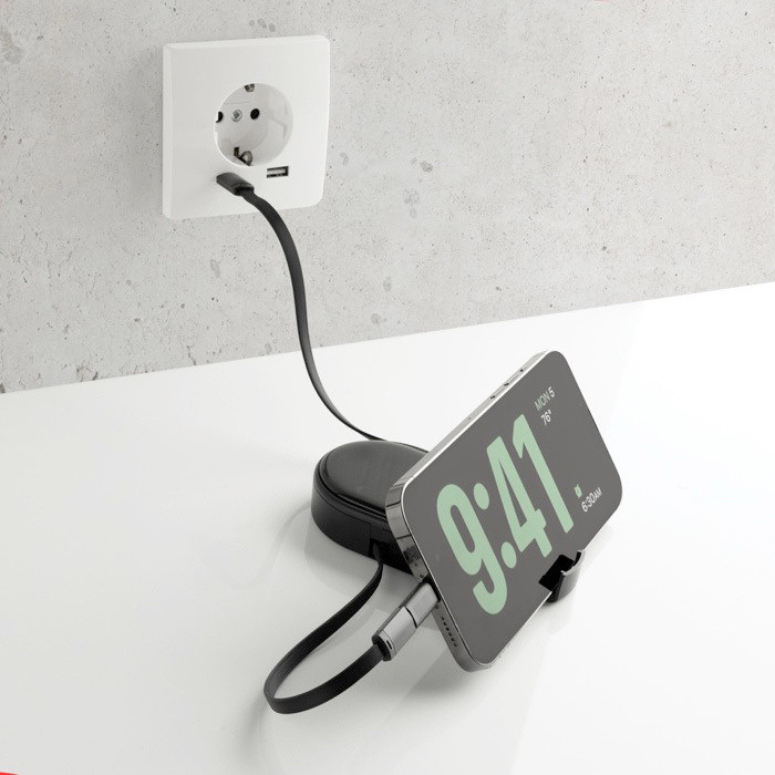 Cable de carga retráctil multiUSB con detalle de bambú y cable de 90cm