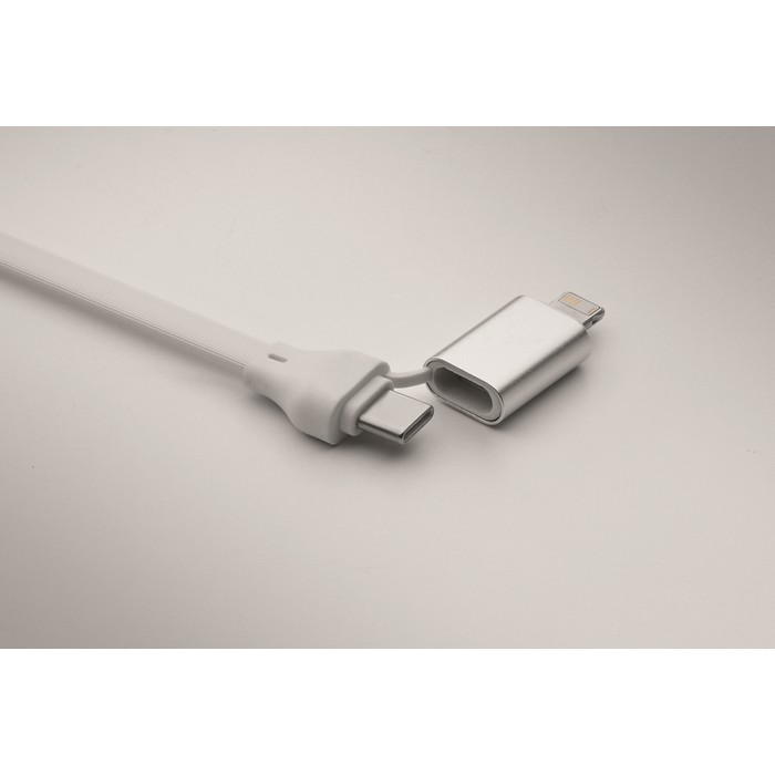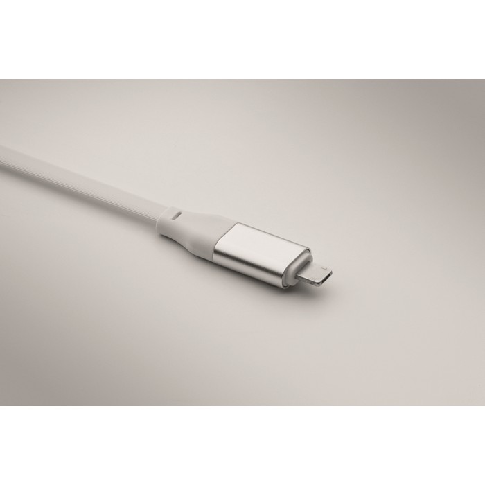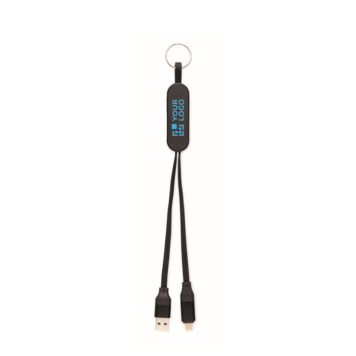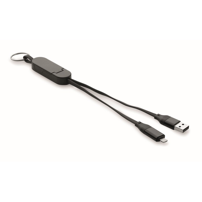 Llavero y soporte para teléfono fabricado en resistente carcasa de ABS reciclado. Este práctico accesorio incluye un cable de 60 W, ideal para cargar dispositivos rápidamente. La entrada es versátil, con opciones 2 en 1 para Tipo-C y Tipo-A, mientras que la salida ofrece compatibilidad con Tipo-C y micro-B gracias a su clavija 2 en 1. Con una longitud de cable de 26 cm, es lo suficientemente compacto para llevarlo a cualquier lugar. Perfecto para empresas que buscan soluciones tecnológicas funcionales y personalizables. Ideal para eventos corporativos o como parte de un kit de bienvenida para empleados.