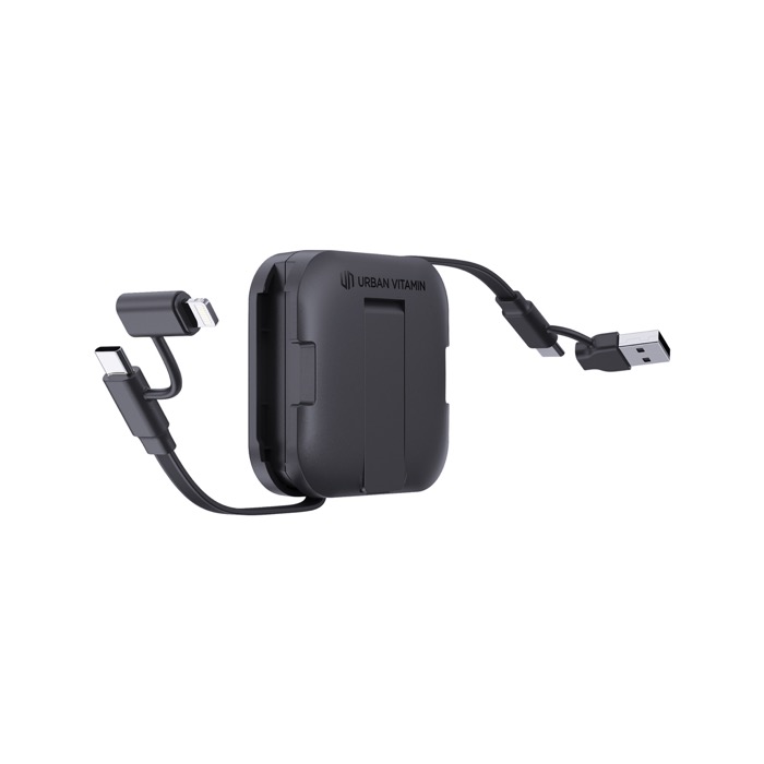 Cable de carga retráctil multiUSB con detalle de bambú y cable de 90cm