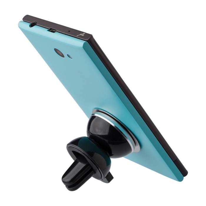 Sencillo soporte de móvil personalizado que se coloca en el respiradero del coche, teniendo además un imán y un adhesivo para un mejor ajuste del teléfono.