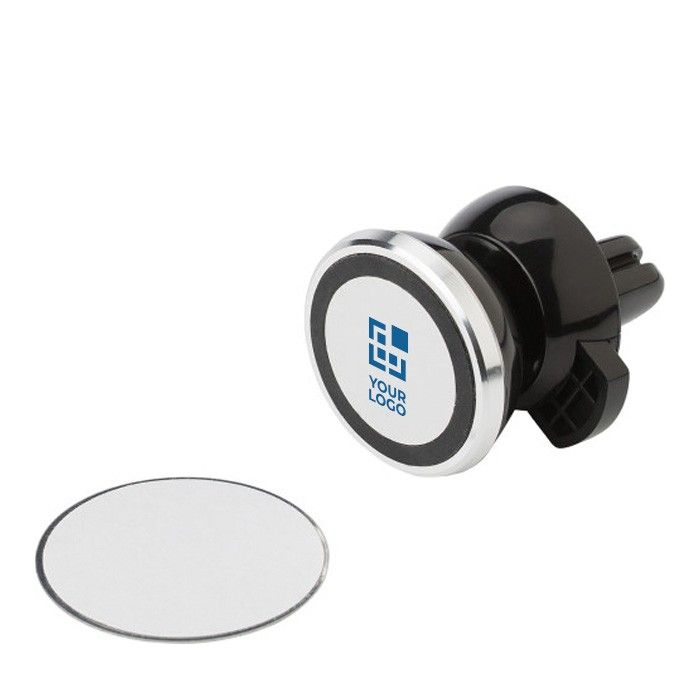 Haz que tu marca esté presente hasta en el más mínimo detalle con este soporte de móvil para coche personalizable con tu logo. Fabricado con plástico ABS, integra un imán y una etiqueta metálica adhesiva que te permitirá ajustar el teléfono de forma cómoda y sencilla. Dicho gadget se coloca en el respiradero del coche y puede ajustarse de manera que ofrezca fácil acceso y no entorpezca o suponga un peligro durante la conducción. Puedes solicitarlo con servicio de transporte rápido.