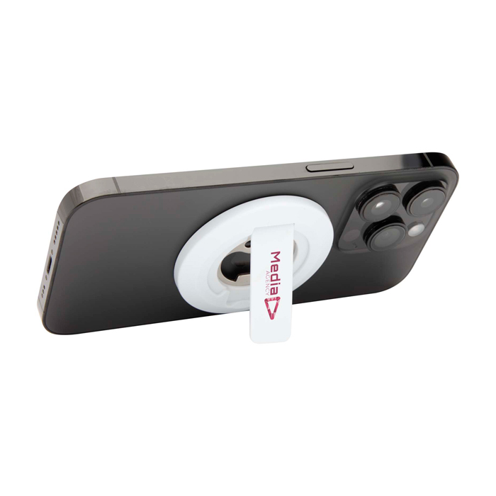 Accesorio 2 en 1 fabricado en plástico reciclado, diseñado para ofrecer funcionalidad y sostenibilidad. Compatible con iPhones 12 y versiones posteriores, su fuerte agarre magnético asegura un ajuste seguro y confiable. Además, funciona como soporte para teléfono, permitiendo un uso cómodo y manos libres. Incluye un práctico abridor de botellas, ideal para eventos corporativos o reuniones informales. Su diseño innovador y práctico lo convierte en una solución versátil para el uso diario o fuera de casa. Con servicio Express, garantiza una entrega rápida y eficiente. Perfecto para empresas que buscan productos funcionales y sostenibles para sus empleados o como regalos corporativos.