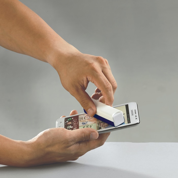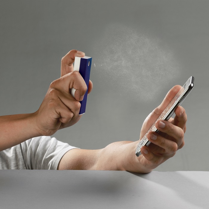 Spray rectangular para limpiar el móvil con paño de microfibra