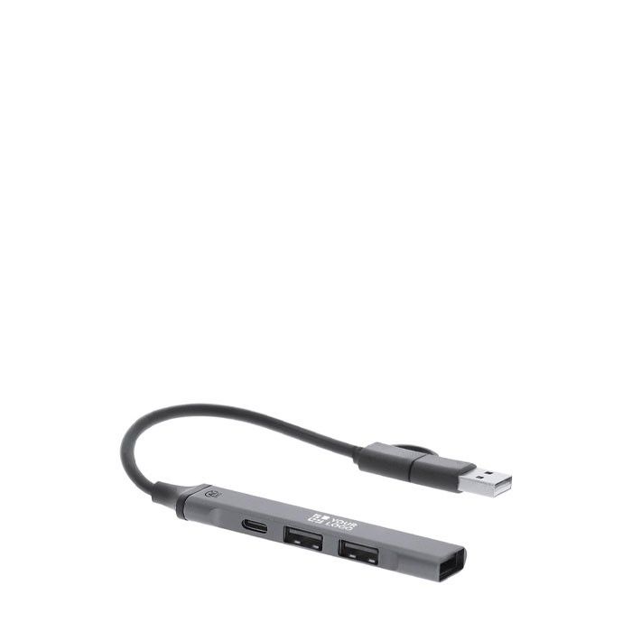 Hub USB de aluminio reciclado con 3 puertos USB 2.0 y Tipo C