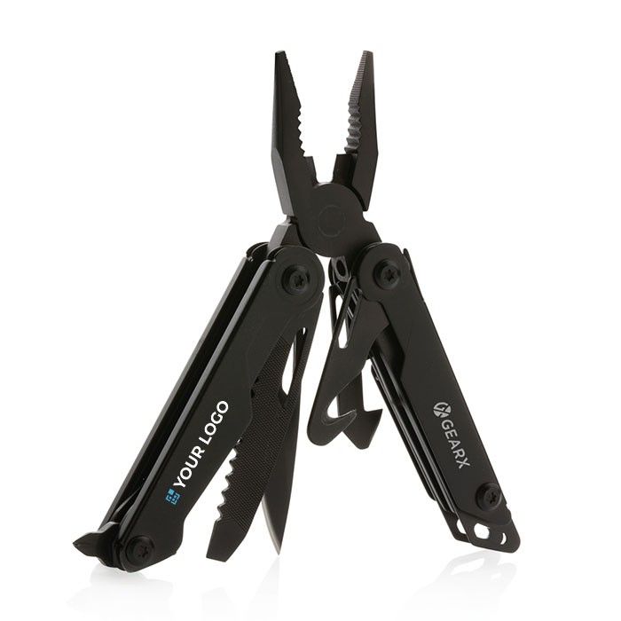 La herramienta GearX, con un cuerpo de aluminio de lujo y herramientas de acero inoxidable 420 de primera calidad, es una solución lujosa y versátil para tus trabajos diarios. Ofrece 13 funciones esenciales, incluyendo un cuchillo con seguro, lima, sierra, y varios tipos de destornilladores, como el plano grande con seguro y el Philips. También cuenta con alicates estándar, cortador de alambre, abrebotellas, cortador de cinturón de seguridad y cortador de cajas. Presentada en una elegante caja de regalo, esta herramienta es ideal para empresas que buscan una solución práctica y de alta calidad para sus necesidades diarias. Perfecta para incluir en kits de herramientas corporativas o como obsequio en eventos empresariales.