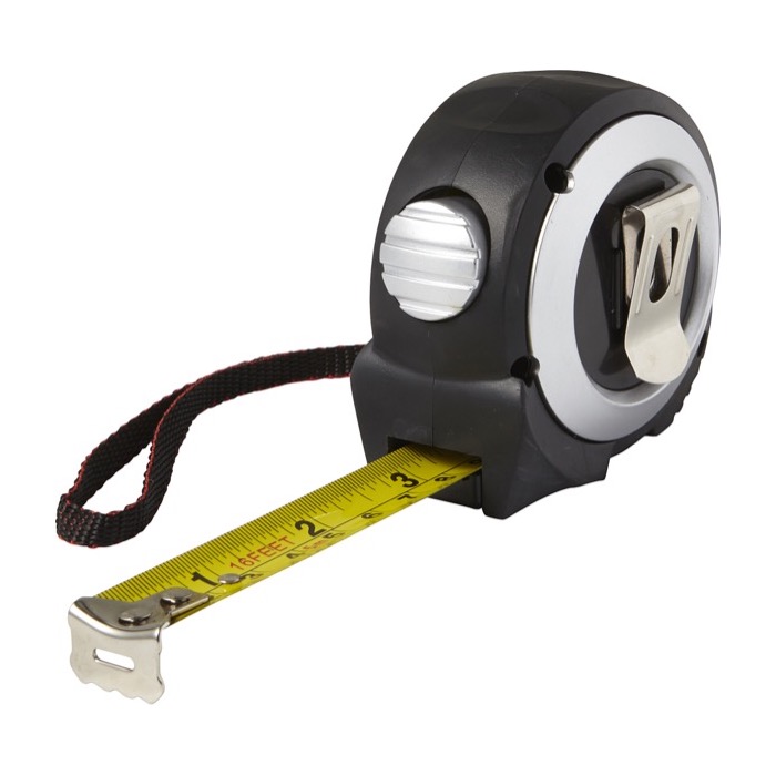- Flexómetro calibrado de 5 metros con clip y cuerda