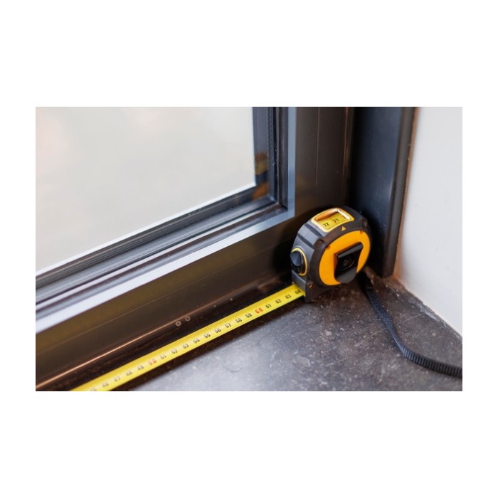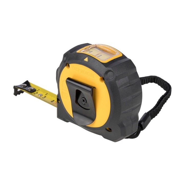 Flexómetro con ventana superior de visualización y cinta doble cara 3M