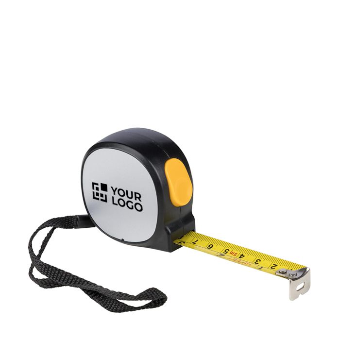 Flexómetro de plástico con lado magnético para fijarlo con rapidez a superficies metálicas. Incorpora cinta metálica de 19mm de ancho y 5m de largo, con marcas en centímetros y pulgadas para lecturas ágiles en distintos entornos de trabajo. El pulsador superior permite bloquear y liberar la cinta con una sola mano, mejorando el control en mediciones repetidas. Incluye correa de muñeca de poliéster y se entrega en caja individual de cartón marrón con ilustración. Recomendable para acciones de merchandising técnico o ferias industriales.