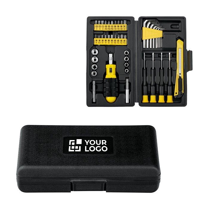 Juego de herramientas fabricado en acero al carbono y plástico (PE), compuesto por 45 piezas. Este conjunto es ideal para resolver cualquier problema técnico que pueda surgir en el entorno corporativo. Cada herramienta está diseñada para ofrecer durabilidad y resistencia, gracias a su construcción en acero al carbono. El plástico (PE) proporciona un agarre cómodo y seguro. Todo el conjunto se presenta en un estuche portátil, lo que facilita su transporte y organización. Además, el producto se suministra en una caja individual, asegurando su protección durante el envío. Con el servicio Express, las empresas pueden contar con una entrega rápida y eficiente. Ideal para equipos de mantenimiento o como parte de un kit de emergencia en oficinas.