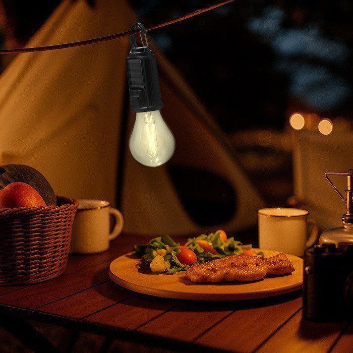 Lámpara en forma de bombilla con carga solar y batería con mosquetón