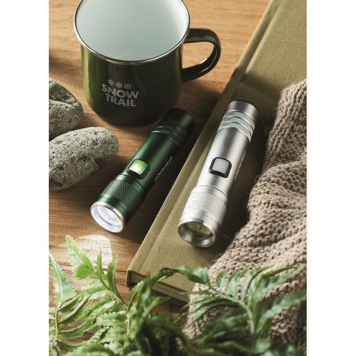 Linterna de aluminio reciclado extensible con 3 ajustes de luz y zoom