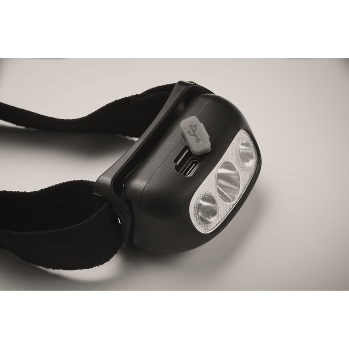 Ofrece una linterna frontal recargable y ajustable con 1 luz LED de 50 lúmenes y tres modos de iluminación, liberando las manos de tus clientes. La batería recargable de 400 mAh, junto con el cable de carga incluido, asegura una autonomía prolongada. Es un obsequio esencial para técnicos, deportistas o cualquier persona que requiera luz constante y dirigida en su trabajo o aficiones. Tus usuarios la valorarán por su comodidad y autonomía, asociando tu marca con la practicidad. Tú refuerzas tu imagen corporativa al proporcionar una herramienta que mejora la productividad y la seguridad en diversas situaciones.