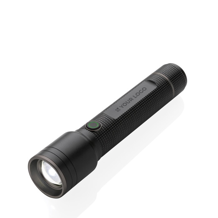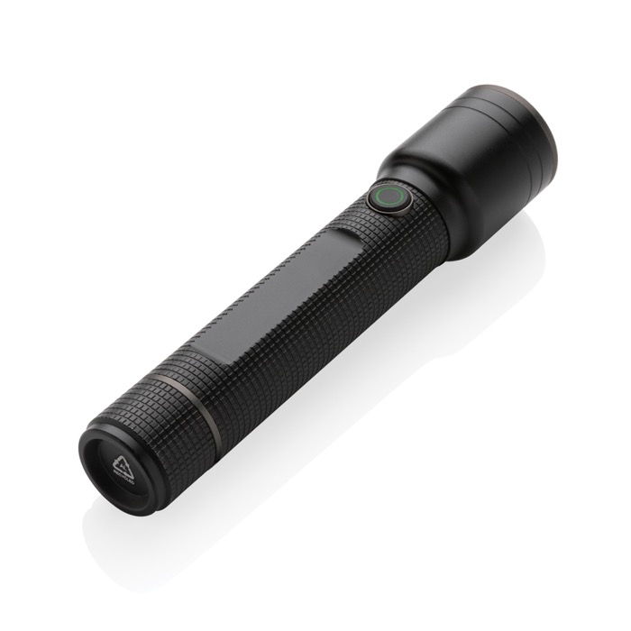 Una linterna de aluminio reciclado con 5 modos de luz y un alcance de 500 metros es una herramienta robusta para entornos exigentes. Con 10W de potencia, ofrece hasta 800 lúmenes, ideal para trabajos de construcción o logística nocturna. Su batería recargable de 2000 mAh permite hasta 8 horas de uso continuo y carga dispositivos móviles. Fabricada con un 20% de contenido reciclado certificado RCS, refuerza el mensaje de sostenibilidad de tu empresa. Resistente a exteriores gracias a su clasificación IP4, se recarga fácilmente mediante USB tipo C.