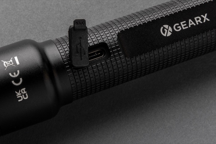 - Linterna recargable GearX con aluminio reciclado certificado RCS