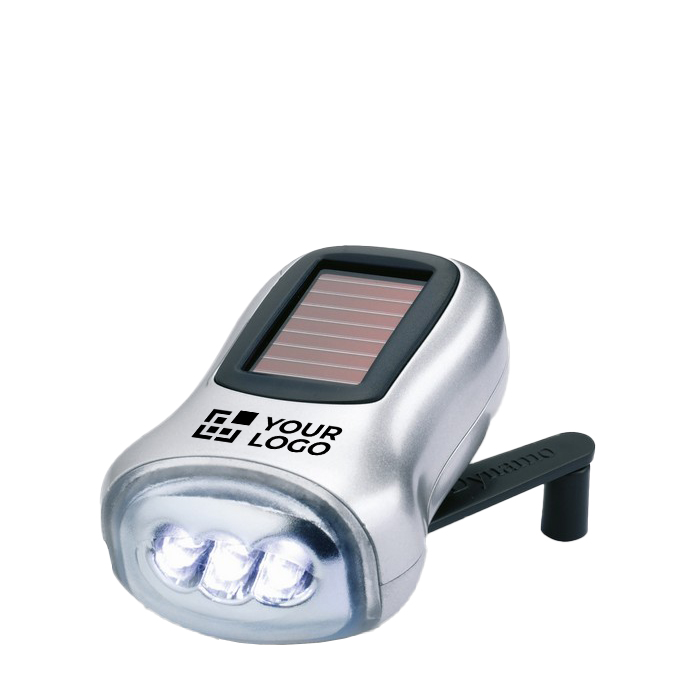 Con una linterna de carga solar y dinamo, tú ofreces la máxima fiabilidad energética a tus clientes. Este dispositivo, que no requiere pilas, es un símbolo de autosuficiencia y respeto por el medio ambiente. Con una carcasa de ABS en plata satinada, proyecta una imagen moderna y resistente. Es un obsequio excepcional para amantes de la naturaleza, empresas de logística o en kits de supervivencia. Tu marca se asocia con la innovación sostenible y la preparación. Tus clientes la valorarán por su capacidad de funcionar en cualquier circunstancia, garantizando que tu logotipo esté presente en momentos de necesidad. Esta linterna fortalece tu compromiso con la sostenibilidad.