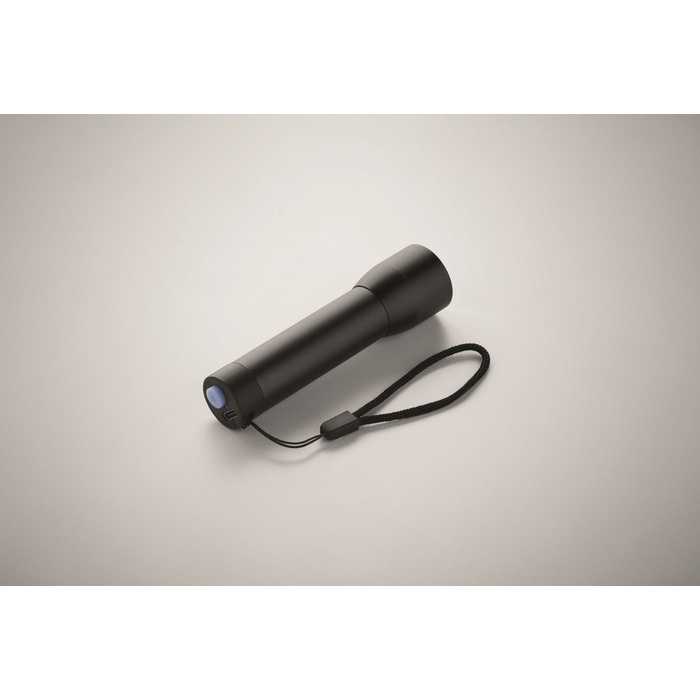 Linterna recargable de aluminio reciclado con varios ajustes de luz y función zoom para adaptar el haz a cada situación. Incorpora una batería de litio 14500 reemplazable, pensada para mantener el rendimiento y facilitar el recambio cuando sea necesario. El cuerpo metálico aporta resistencia en uso diario y el formato compacto ayuda a llevarla en mochila, cajón o vehículo. Opción práctica para kits de bienvenida, dotaciones internas, ferias o acciones de marketing técnico.