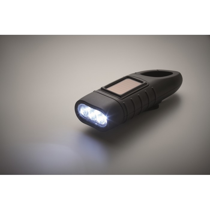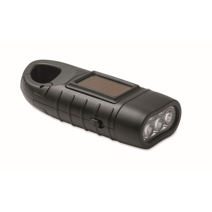 Linterna recargable por panel solar y por manivela dinamo