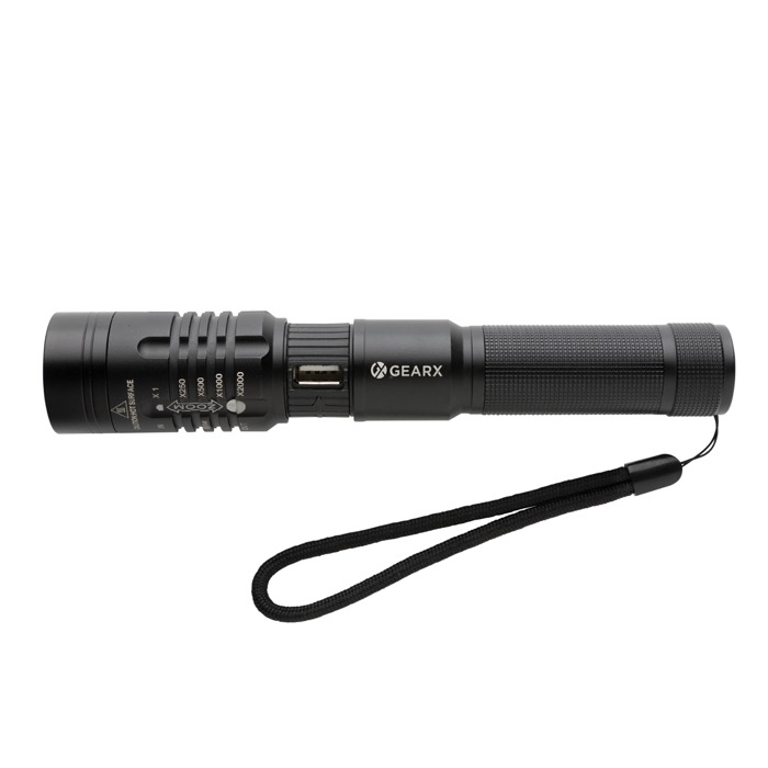 Linterna personalizada de aluminio recargable mediante USB GearX