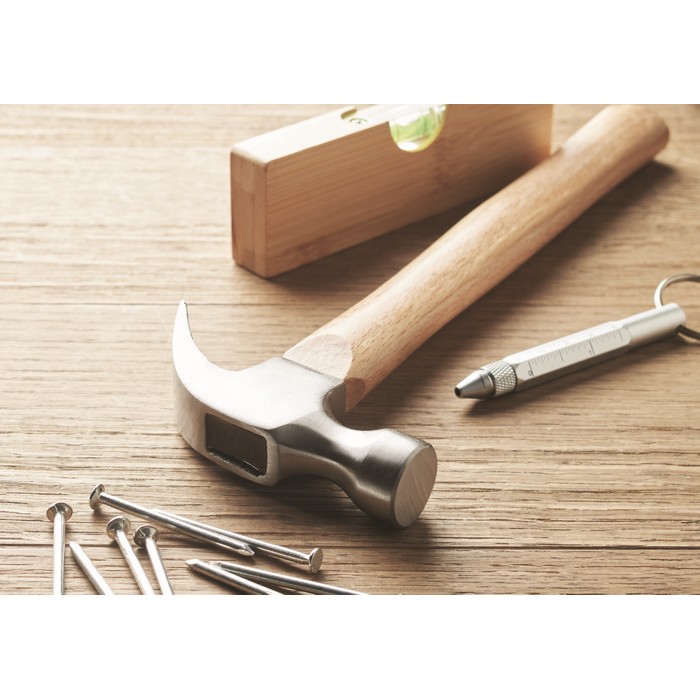- Martillo de carpintero con cabeza de acero y mango de madera de haya