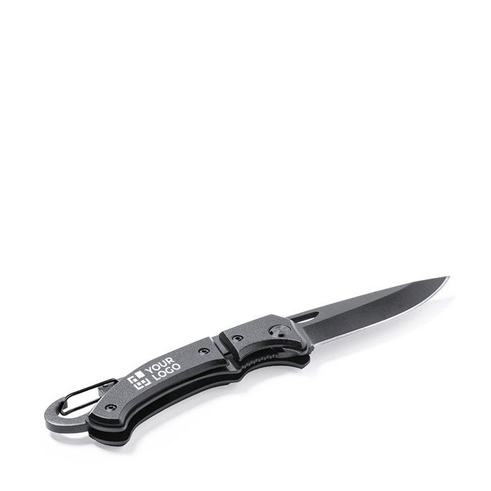 Para aquellos que priorizan la resistencia y la seguridad, una navaja robusta con hoja de acero inoxidable y empuñadura de aluminio es un regalo de gran impacto. Tú ofreces una herramienta fiable, equipada con mosquetón para fácil transporte y bloqueo de seguridad para un uso sin riesgos. La hoja tiene un acabado negro y un troquelado que facilita su apertura. Al grabar tu logo en este diseño, asocias tu marca con la durabilidad y la protección. Presentada en una caja individual de diseño negro, este obsequio demuestra tu compromiso con la calidad y la utilidad en cualquier entorno, desde actividades al aire libre hasta tareas diarias, fortaleciendo la confianza en tu empresa.