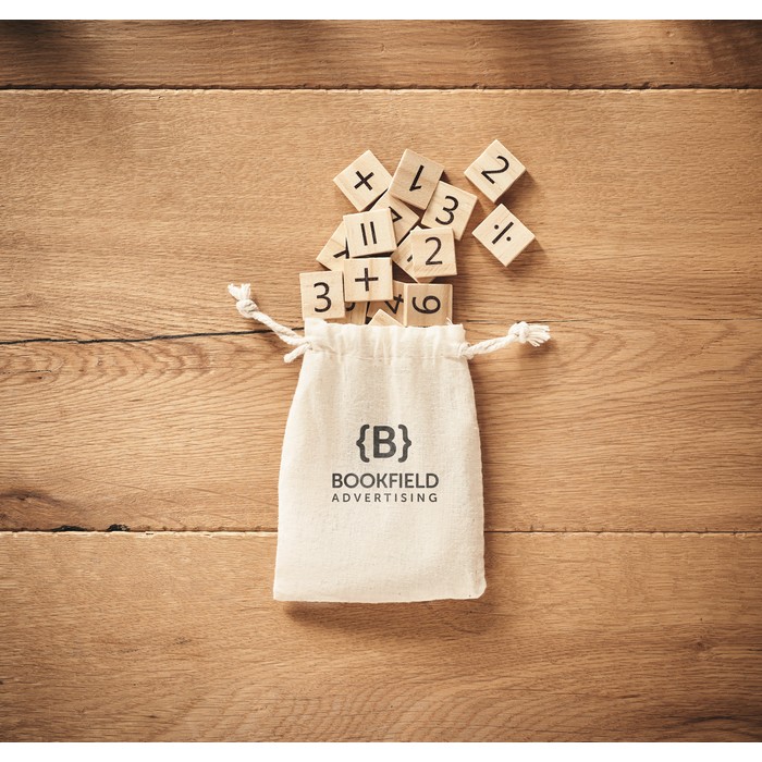Juego educativo de madera, presentado en una práctica bolsa de algodón, ideal para el sector educativo. Incluye 32 piezas que abarcan diversos números y símbolos para realizar operaciones matemáticas básicas. Este conjunto es perfecto para fomentar el aprendizaje interactivo y el desarrollo de habilidades matemáticas en un entorno escolar o de formación. Además, el servicio Express asegura una entrega rápida y eficiente, adaptándose a las necesidades urgentes de las empresas. Ideal como material didáctico o como un regalo promocional en eventos educativos, este juego combina funcionalidad y valor educativo.