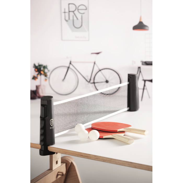- Conjunto de tenis de mesa con red enrollable y bolsa de RPET