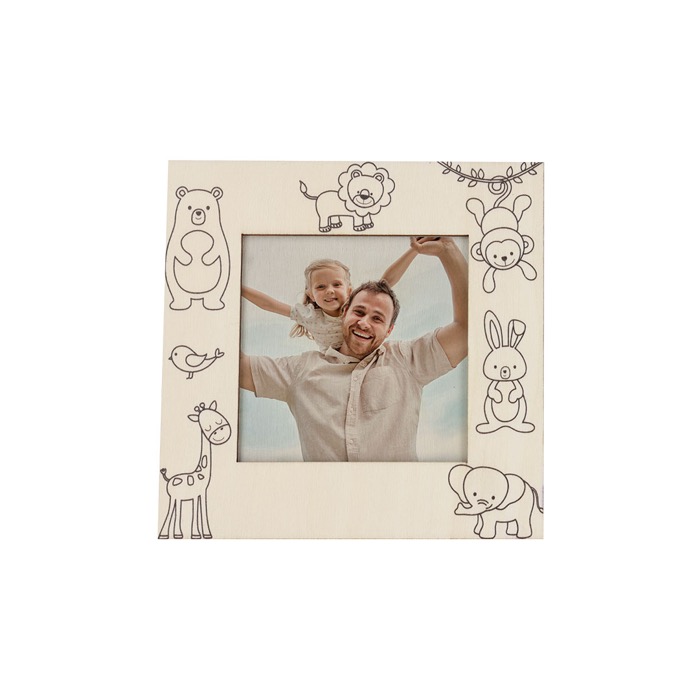 Marco de fotos de madera con dibujos de animales para pintar con ceras