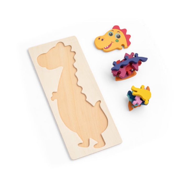 Rompecabezas con forma de dinosaurio hecho de madera de pino