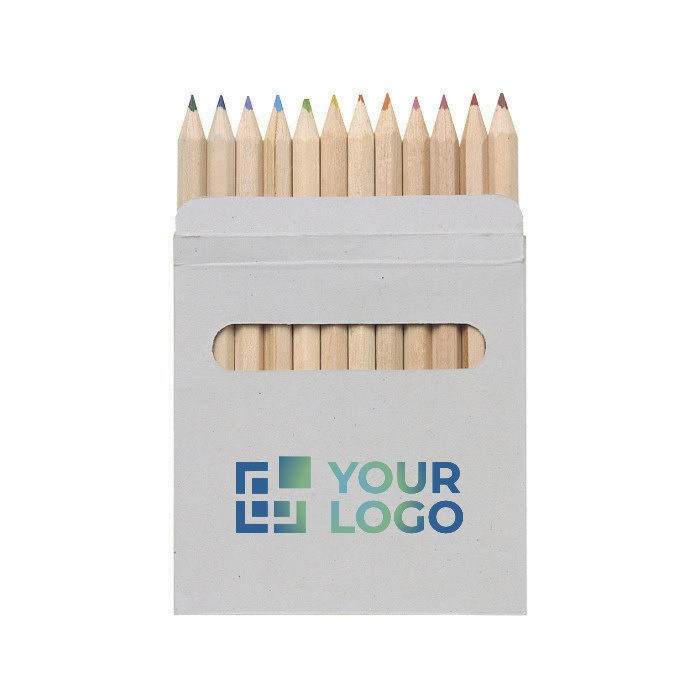 Set de 12 lápices de colores, presentado en un elegante estuche de cartón que destaca por ser práctico y de diseño eco-amigable. Este artículo, personalizable con el logo de tu empresa, se convierte en el obsequio corporativo por excelencia para un público más infantil. El cartón, material principal de este estuche, no solo asegura la protección de los lápices, sino que hará destacar a tu logo mucho más al ser de un color más discreto. Aprovecha nuestro servicio de transporte exprés para este producto, para tenerlo a tiempo y poder usarlo en tu siguiente acción publicitaria.