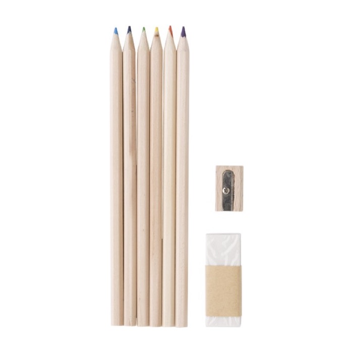 Pequeño set de 6 lápices de colores, sacapuntas y plantillas Playtime
