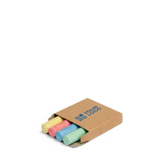 Caja de papel craft que contiene 4 tizas de colores: amarillo, rojo, verde y azul. Cada tiza está diseñada para ofrecer un trazo suave y vibrante, ideal para pizarras y superficies similares. La caja artesanal no solo protege las tizas, sino que también aporta un toque rústico y elegante. El servicio Express asegura una entrega rápida y eficiente, adaptándose a las necesidades urgentes de su empresa. Perfecto para actividades promocionales con niños o como material publicitario atractivo en eventos corporativos.