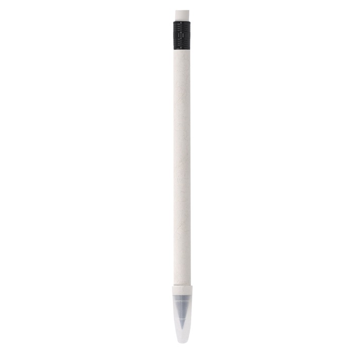 Lápiz eterno fabricado con cartones de leche reciclados. Este innovador producto ofrece una escritura infinita, lo que lo convierte en una herramienta reutilizable y duradera. En la parte superior, se encuentra una goma de borrar integrada, ideal para correcciones rápidas. Además, cuenta con una capucha de protección que asegura su durabilidad. Su diseño en color blanco con detalles en negro le da un aspecto moderno y profesional, mientras que el distintivo de cartón de leche reciclado en el cuerpo resalta su compromiso con la sostenibilidad. Perfecto para empresas que buscan regalos corporativos creativos y ecológicos, o para campañas de marketing que promuevan la responsabilidad ambiental.